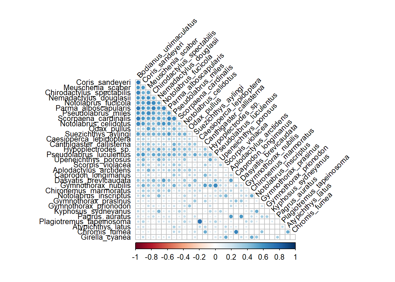 Like Anderson et al. (2019), we will use the Poor Knight fish data which you can download as part of the supplementary materials of the paper. There you can also find the R scripts 1 to 3 (named ece34948-sup-0003-DataS1.txt, ece34948-sup-0004-DataS2.txt and ece34948-sup-0005-DataS3.txt). In the code below, we load the data and the renamed R scripts. Note that the original third script also contains an example use case. I split the file into one containing the functions which we load here and another one which contains the example use case, which I don’t load.