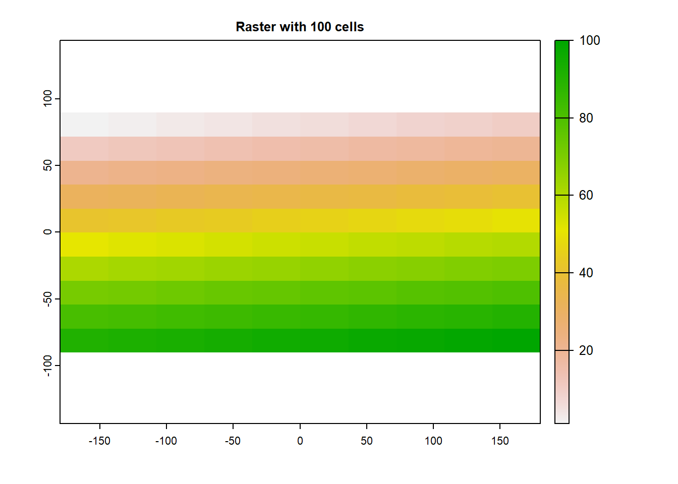 plot(r, main='Raster with 100 cells')