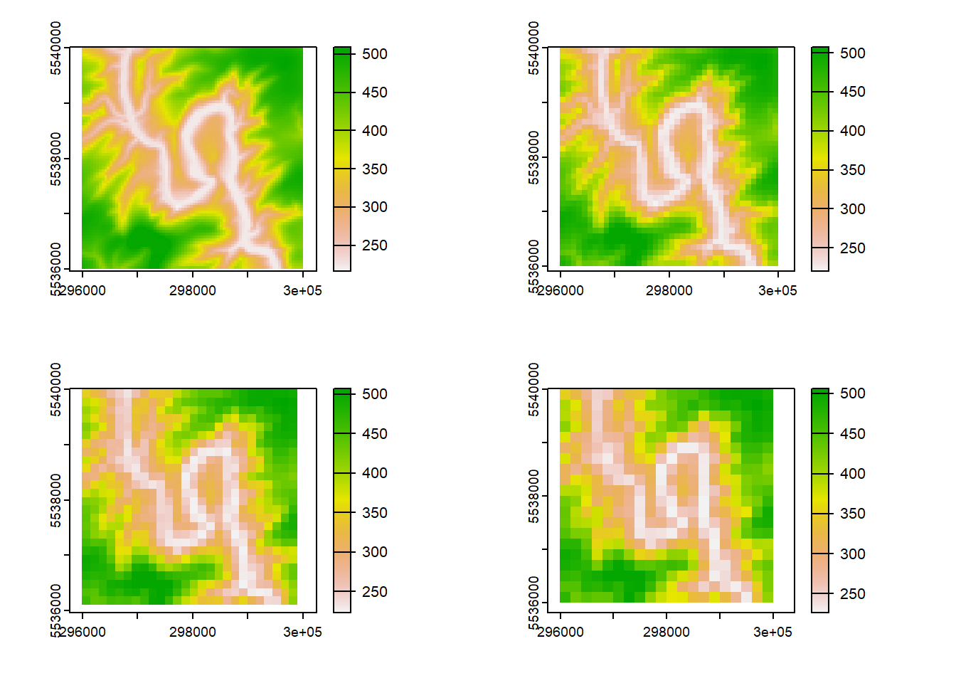 dem1_agg_2_mean = aggregate(dem1, fact=2, fun = "mean")