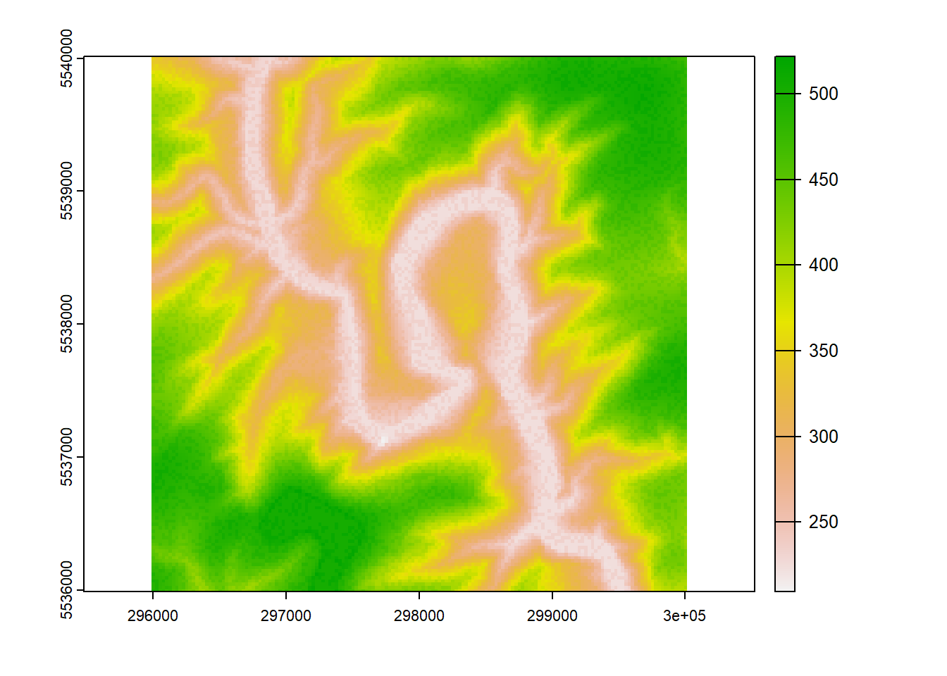 ## extent : 295987.5, 300012.5, 5535988, 5540013 (xmin, xmax, ymin, ymax)